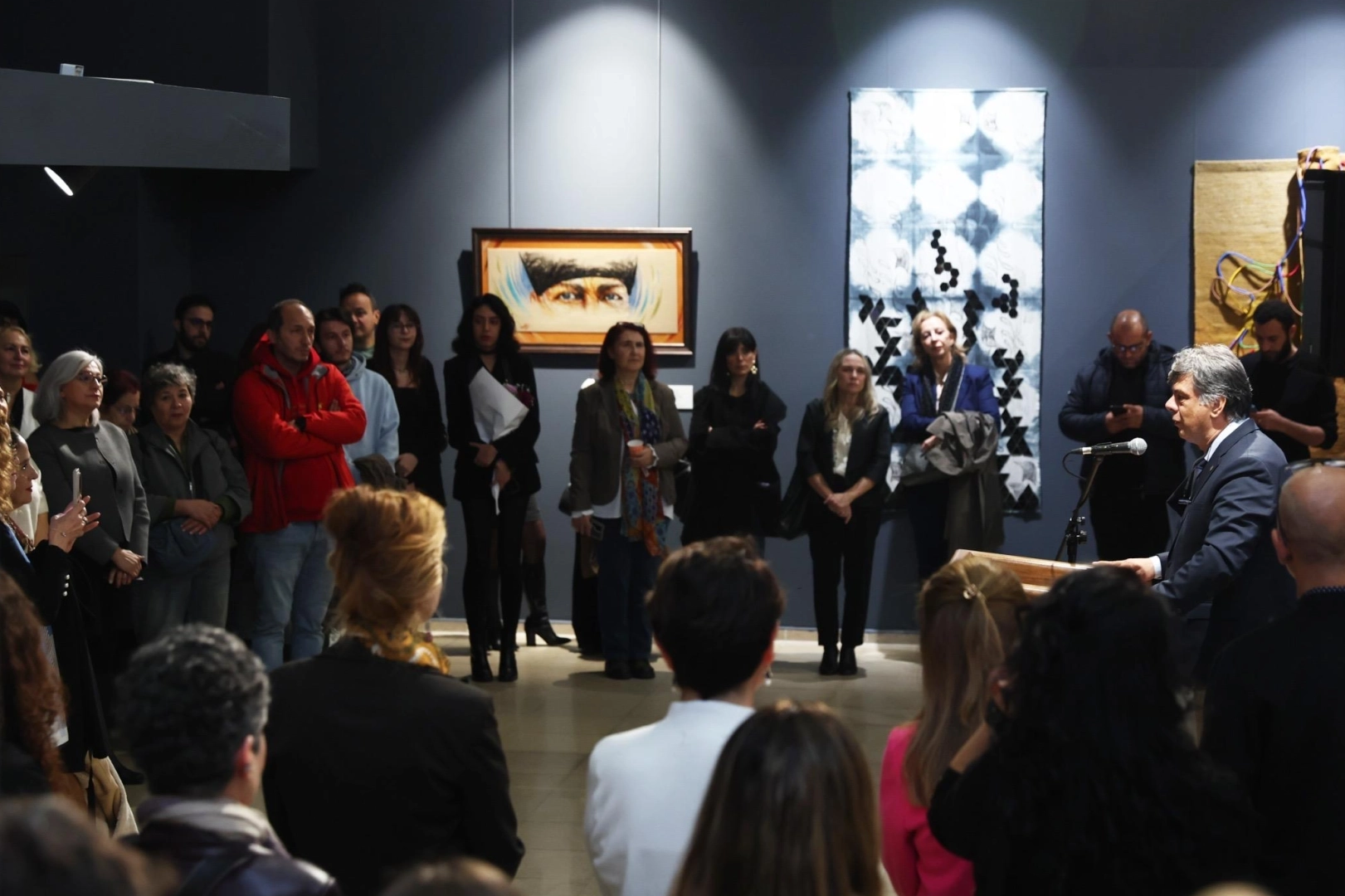 Açılış programı; DEÜ GSF Dekan Vekili Prof. Dr. Serdar Aybek, akademisyenler, öğrenciler ve çok sayıda sanatseverin katılımıyla gerçekleştirildi.
