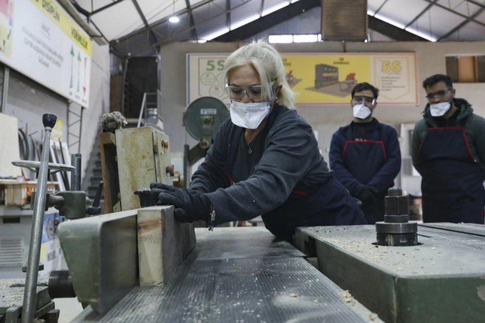 ‘Mobilya İmalat ve Montaj’ kursunun sunduğu ücretsiz eğitimlerle kursiyerler, ahşap işçiliğinin temel tekniklerini öğrenerek üretim yapıyor. Kursiyerler, uluslararası geçerliliğe sahip Mesleki Yeterlilik Belgesi (MYK) ile kendi iş yerlerini açabilme fırsatı bulurken, yurt dışında çalışma olanağına da sahip olabiliyor.