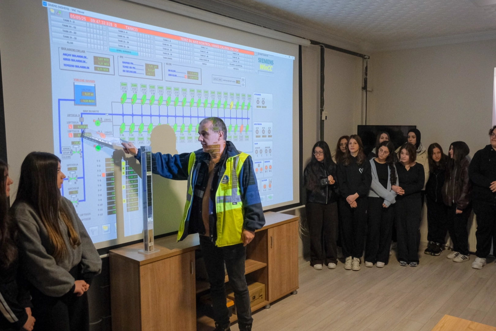 Ziyaretin ilk durağı olan Hızırilyas İçmesuyu Arıtma Tesisi’nde öğrenciler, coğrafi verilerin su yönetimi için ne kadar kritik olduğunu gördü.